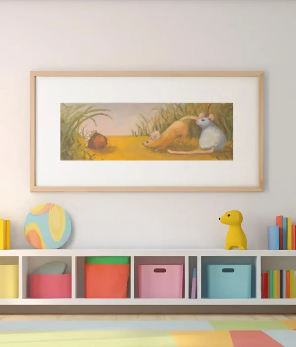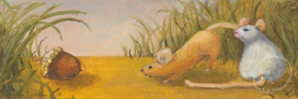 Frolicking Fall plays homage to all the story books about forest animals I read as a small child. I wanted to use the colour and texture of the canvas to evoke a sense of warmth and nostalgia.
